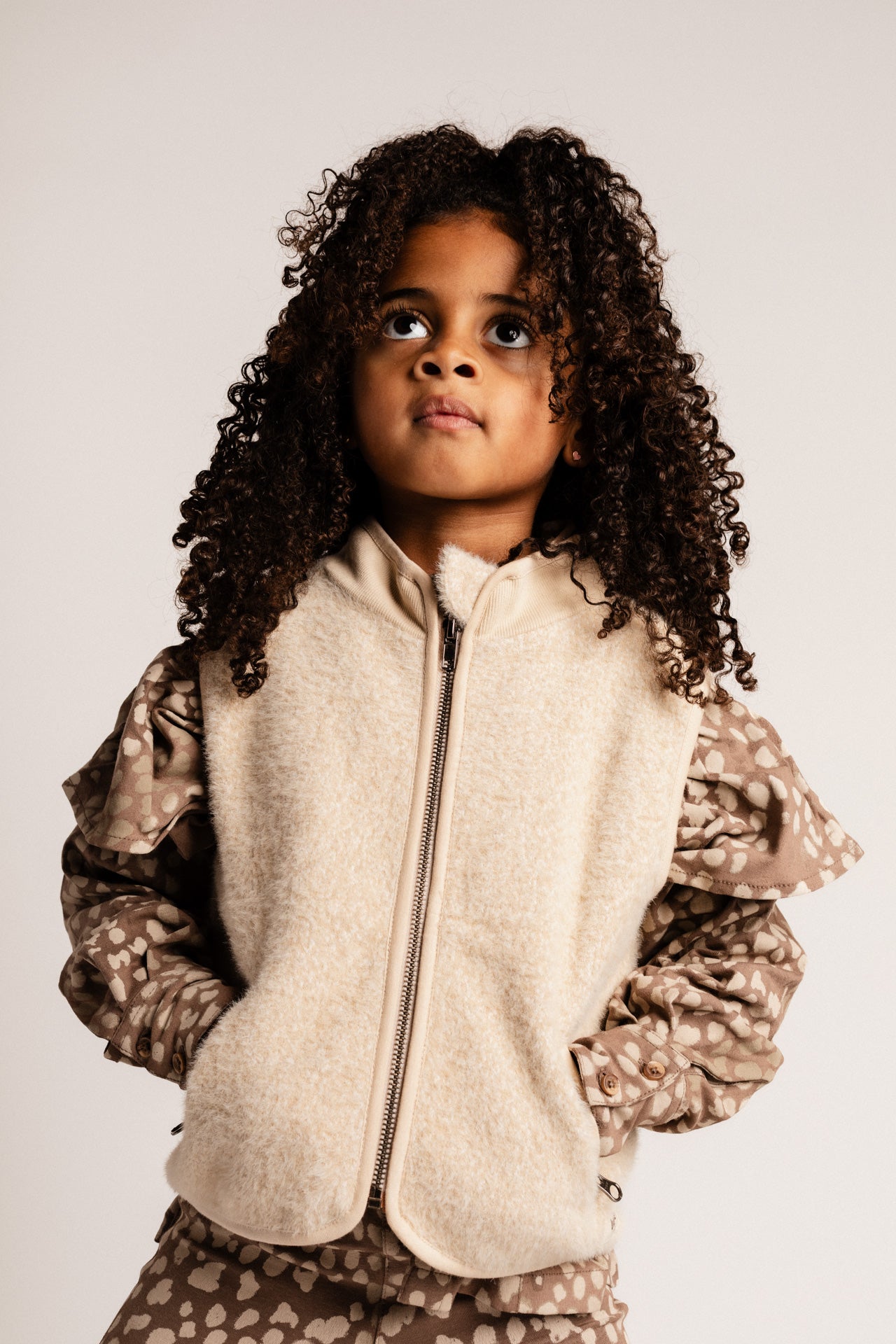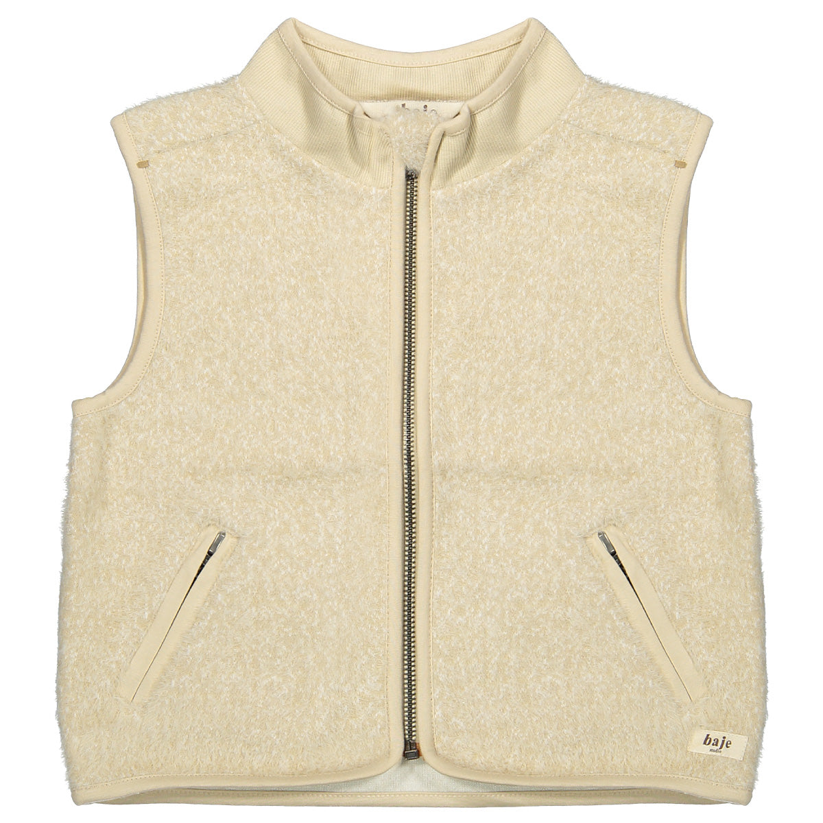 Kleur: de kleur sand desert valt bij deze bodywarmer meer als een offwhite/crème tint.