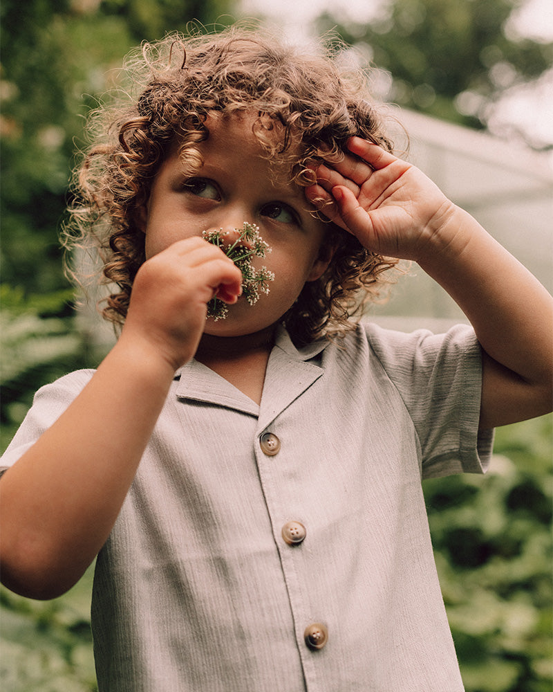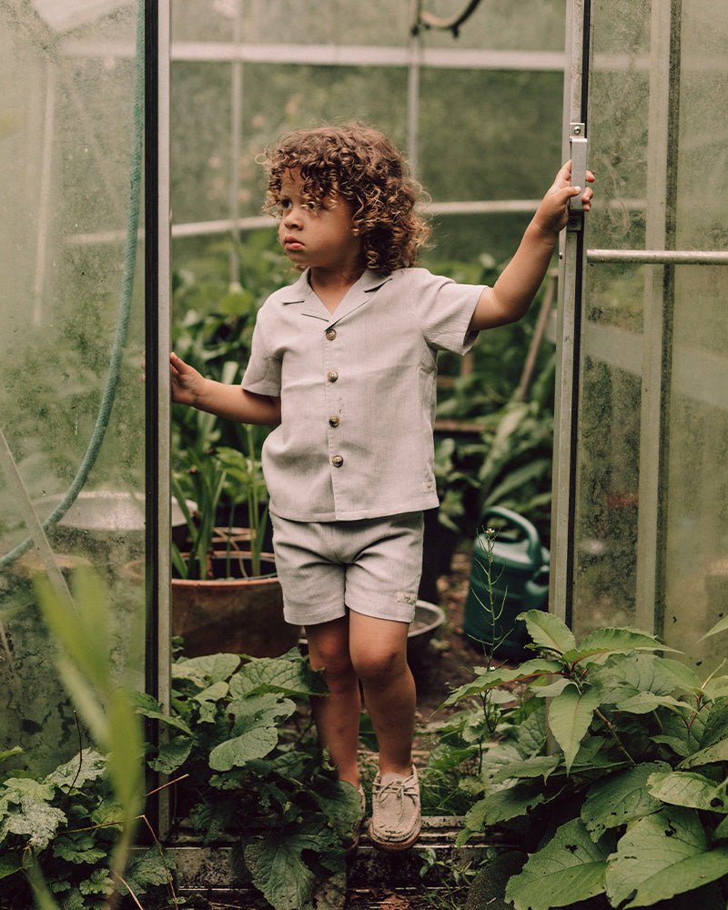 Deze geweven linnen jongensblouse is de perfecte keuze voor een luxe outfit met een eigentijdse flair. De doorknoopsluiting en het hoogwaardige geweven stof zorgen voor een stijlvolle, nette uitstraling die ideaal is voor speciale gelegenheden zoals een bruiloft of feest.