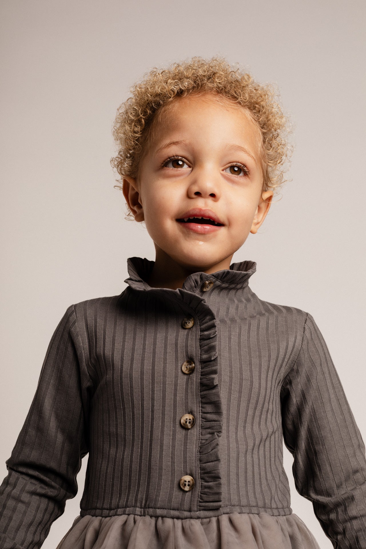 Super mooi winter jurkje van Baje Studio. Dress Marly heeft een katoen bovenlijfje met klein opstaand kraagje en een tule rok. Geschikt voor feestelijke gelegenheden,