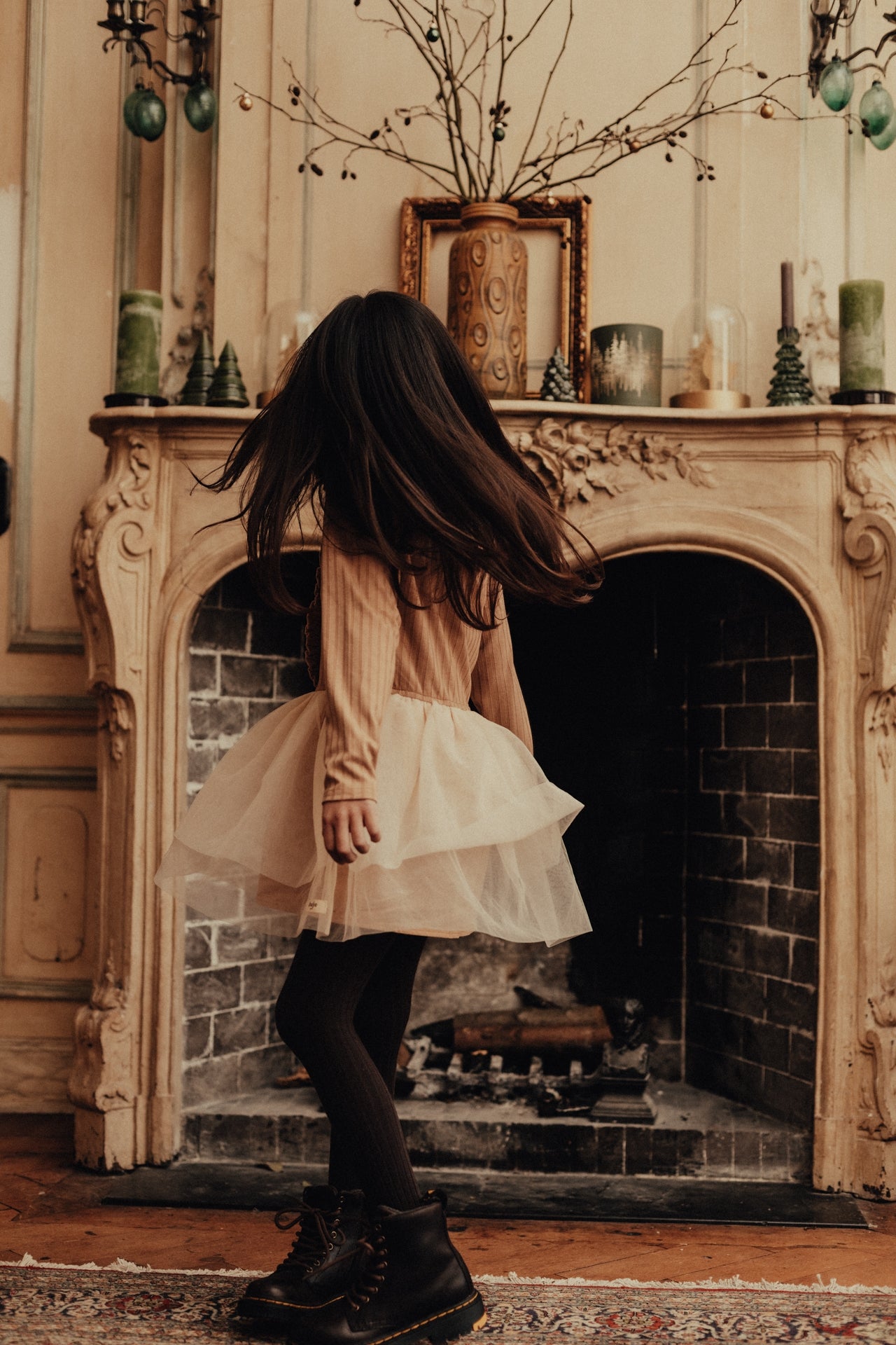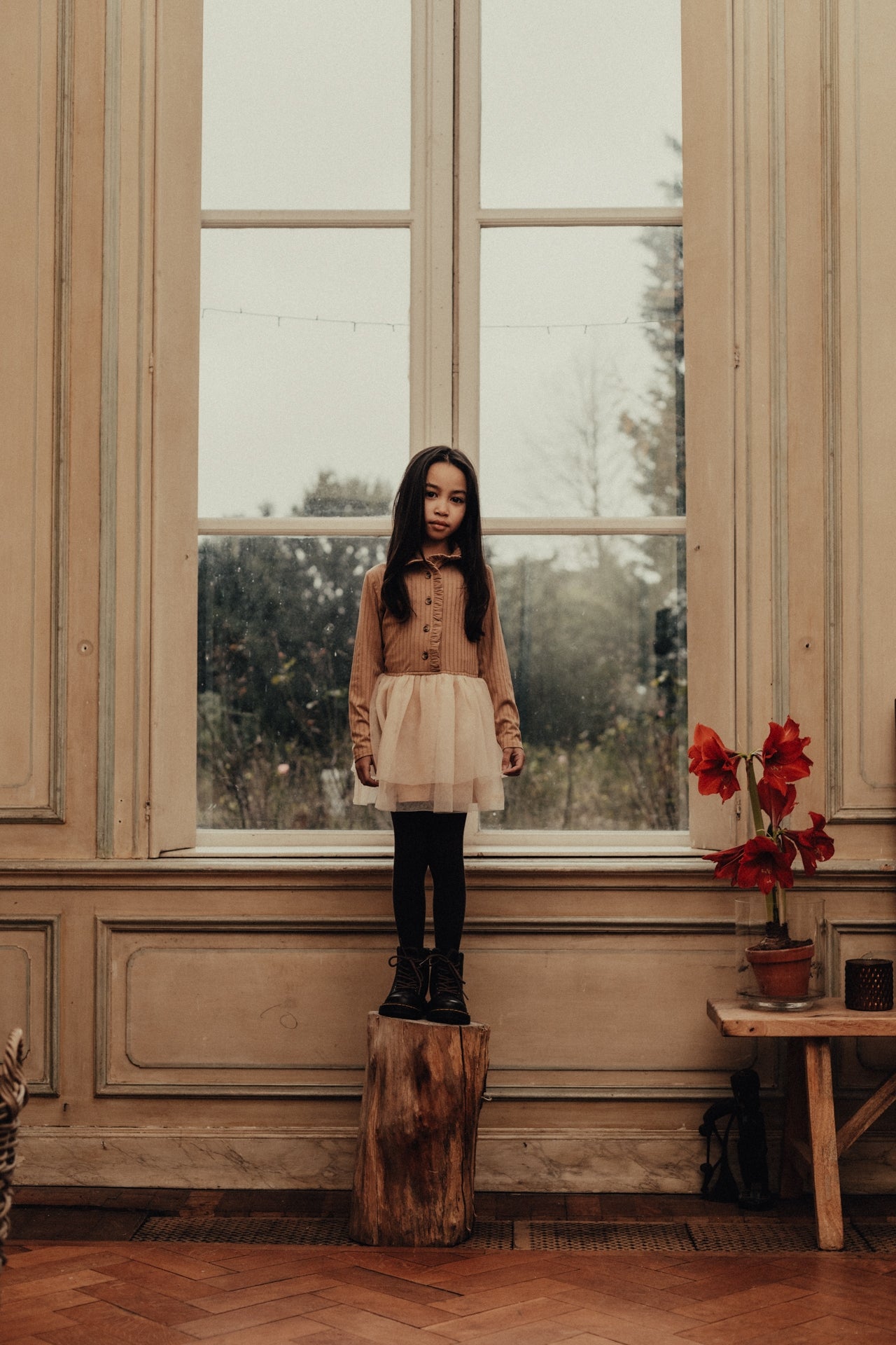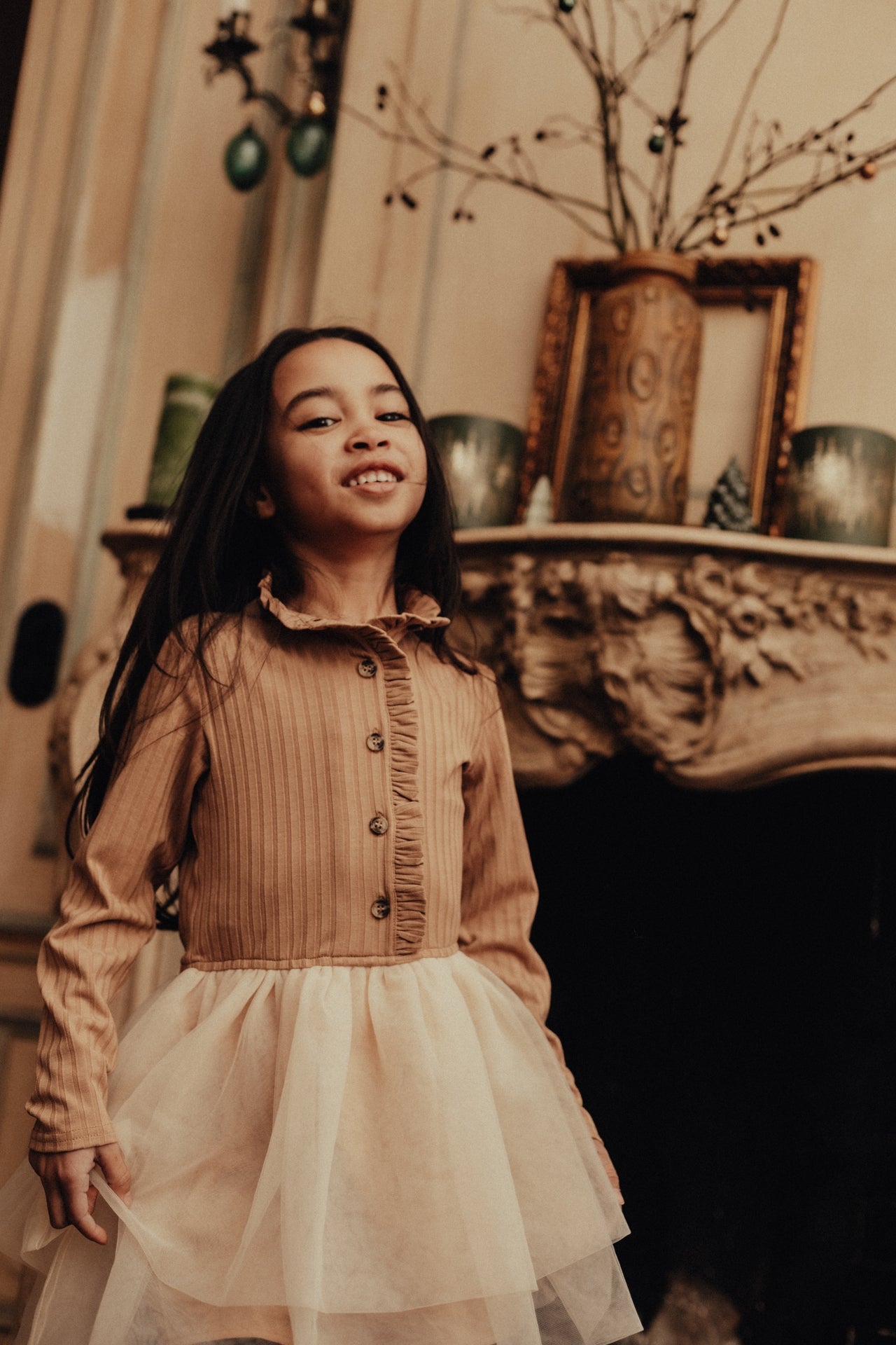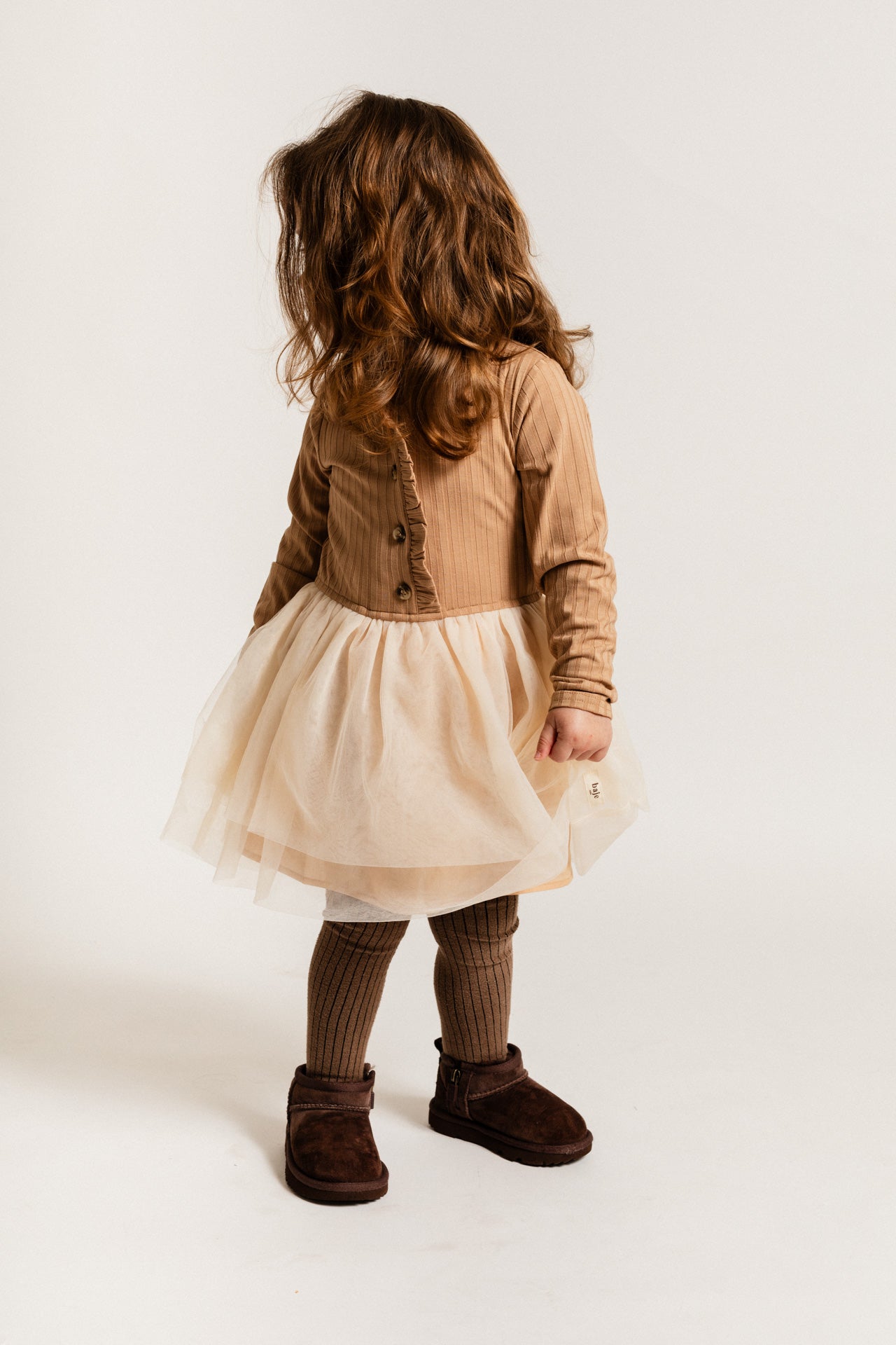 Super mooi winter jurkje van Baje Studio. Dress Marly heeft een katoen bovenlijfje met klein opstaand kraagje en een tule rok. Geschikt voor feestelijke gelegenheden,