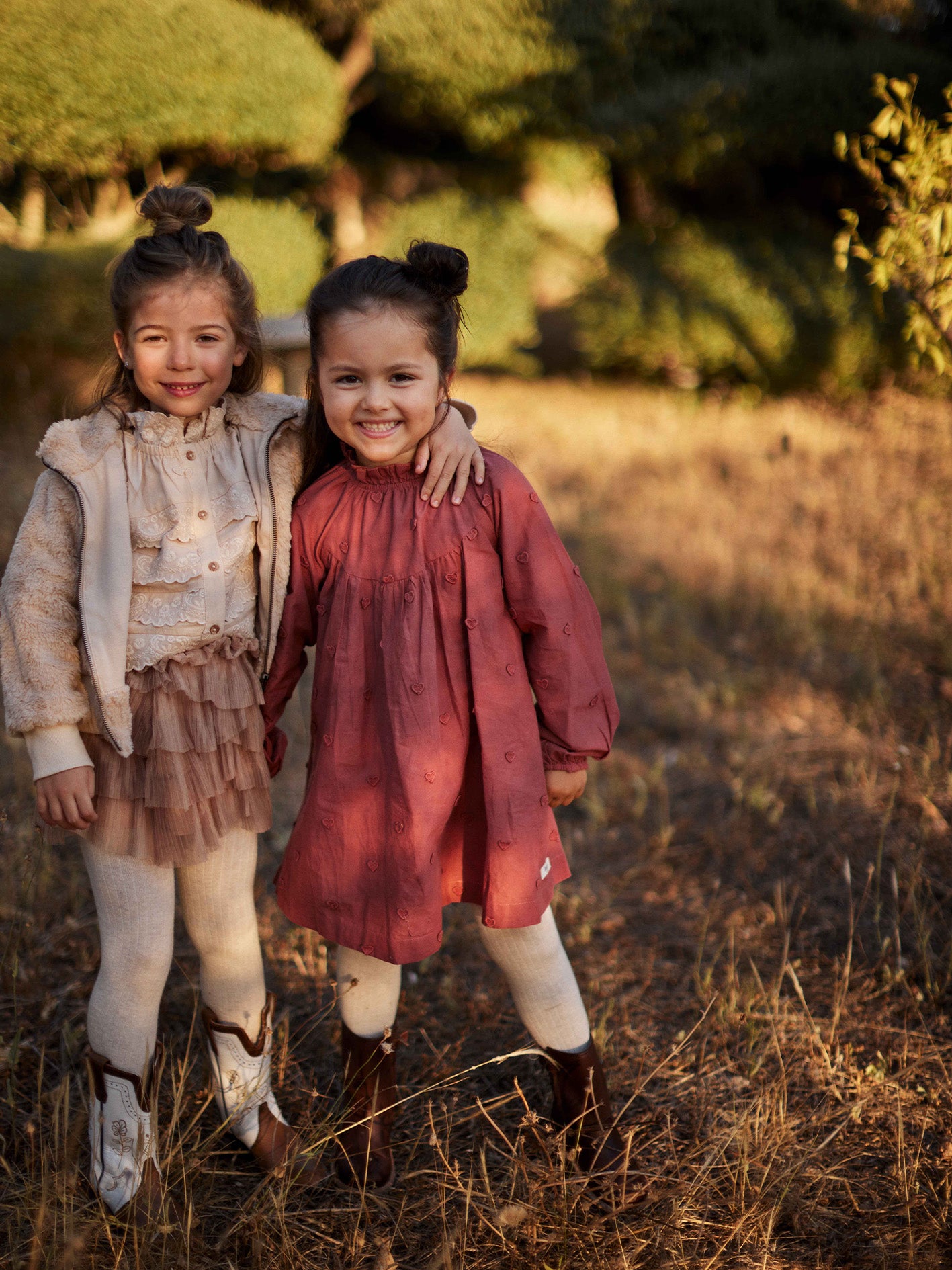 Hoe valt de kleding van Baje Studio? De kinderkleding van Baje valt op maat. Deze jurk ook, echter is de pasvorm kort. Een maat groter nemen kan al snel als je de jurk liever wat langer hebt. Jurk Lajoux valt van zichzelf al wijd uitlopend (A-lijn) dus dat maakt ook geen zichtbaar verschil bij een maatje groter.