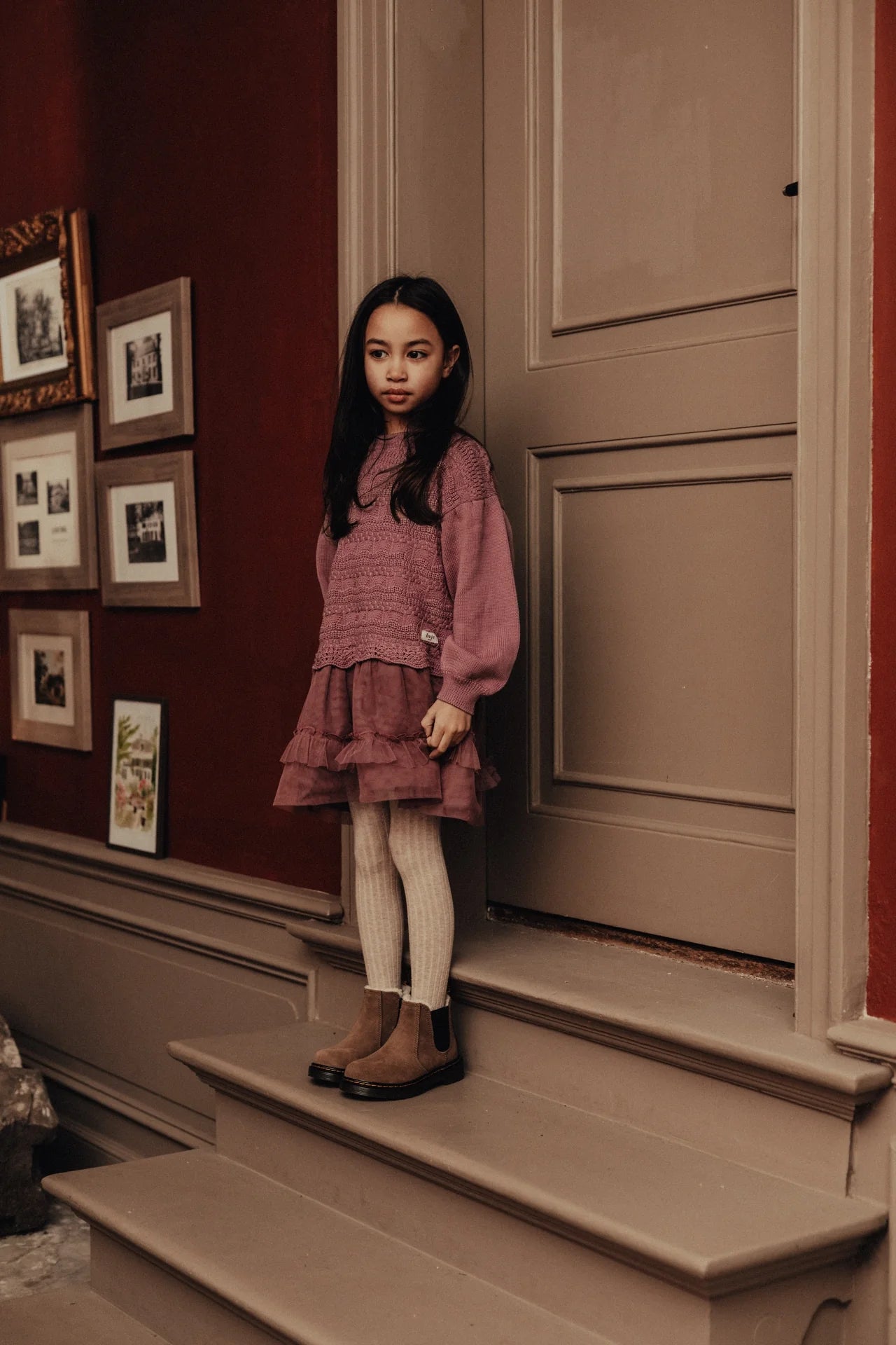 Lichte kleur rib maillot voor baby's en kinderen. Tights Milly van Baje Studio is een winterse maillot met brede rib en zowel in baby- als kindermaten beschikbaar. Deze maillot matcht fijn met heel veel andere items uit de bajestudio winter collectie.