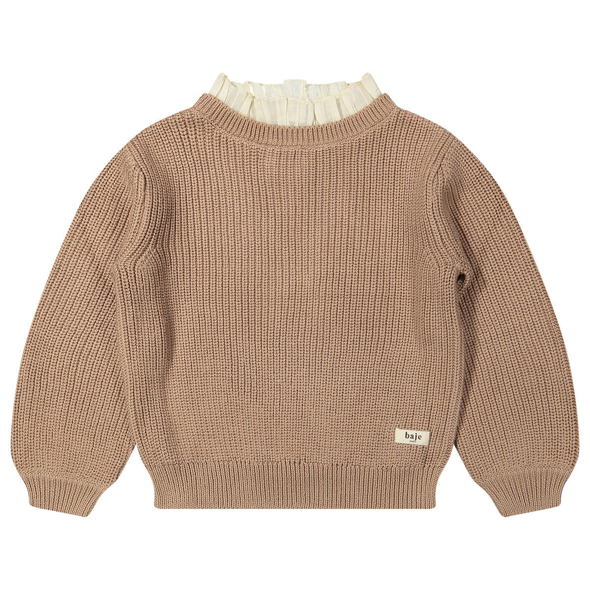 Prachtig gebreide trui voor meisjes van Baje Studio. Knitted sweater Soho heeft een mooi offwhite kraagje, zodat het lijkt alsof je er een blouse onder draagt.