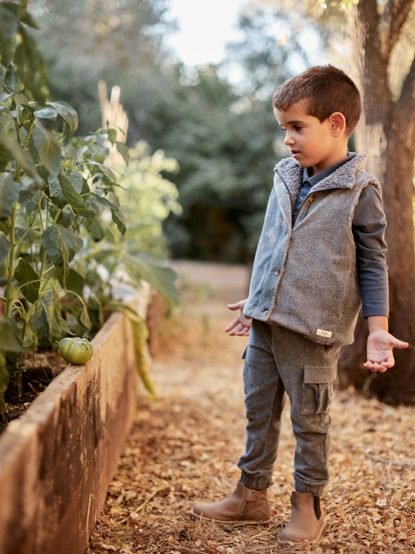 Corduroy cargo broek Wez van Baje Studio is dé perfecte combinatie van comfort en stoere stijl. Gemaakt van zachte ribstof voelt de broek warm en flexibel aan, terwijl de cargo zakken zorgen voor een trendy en speelse look. De elastische tailleband en boorden maken dat de broek altijd goed aansluit en heerlijk zit, ideaal voor actieve kinderen. Dankzij de neutrale kleur grijs is deze broek makkelijk te combineren met truien, hoodies en vesten uit de Baje Studio collectie.
