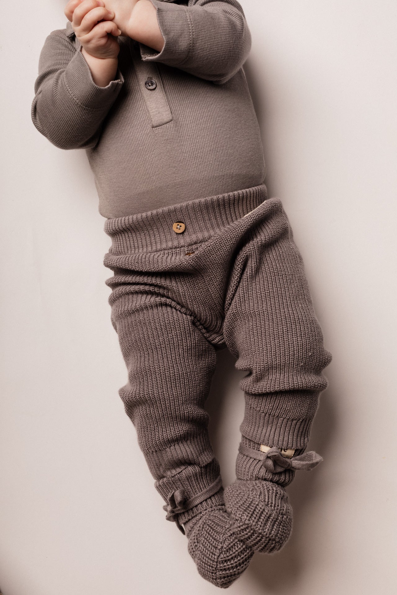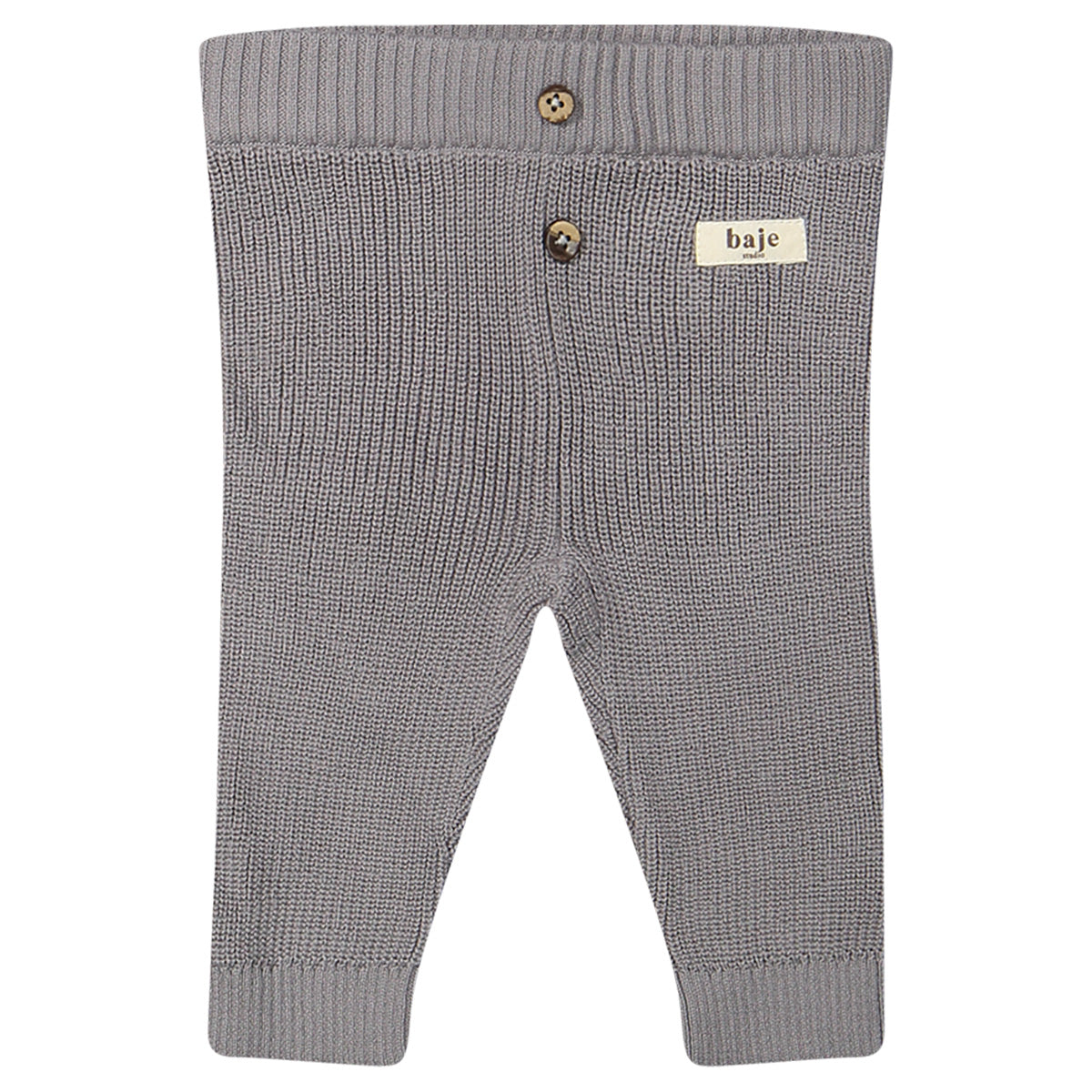 Baby broek Wil van Baje Studio is een onmisbaar item voor de garderobe van je kleintje. Dit comfortabele gebreide broekje is uitgevoerd in een mooie grijze tint. De houten knoopjes aan de taille geven een speelse en authentieke uitstraling. De elastische boord en het zachte katoen zorgen ervoor dat je kindje zich vrij kan bewegen en de hele dag comfortabel zit. Het eenvoudige design maakt het een veelzijdige basic die je makkelijk combineert met sweaters, vestjes of rompers uit de Baje winter collectie.