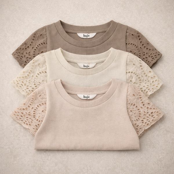 Prachtige zomer top met korte mouwen. Shortsleeve Bless van Baje Studio heeft de kleur brown coconut, dit is een midden bruine tint. Het shirt voor meiden heeft prachtige broderie anglaise mouwen. Fijn te combineren met veel andere items uit de Baje zomercollectie.
