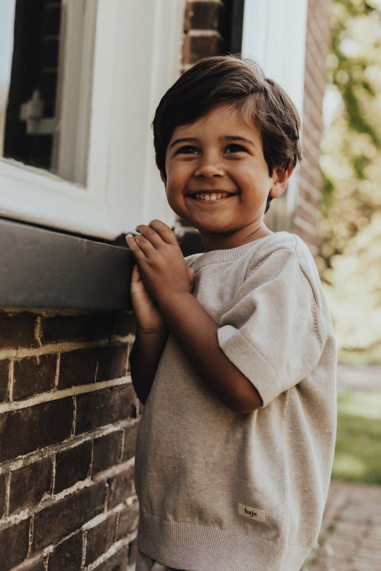 Gebreid shirt met korte mouwen. Shortsleeve Cruz van Baje Studio heeft de kleur sand melange.
