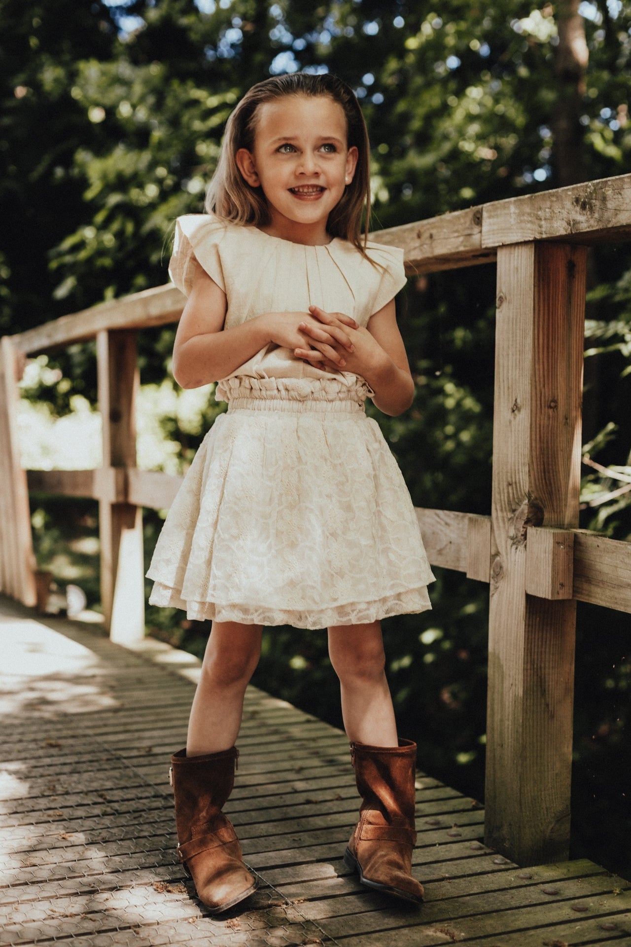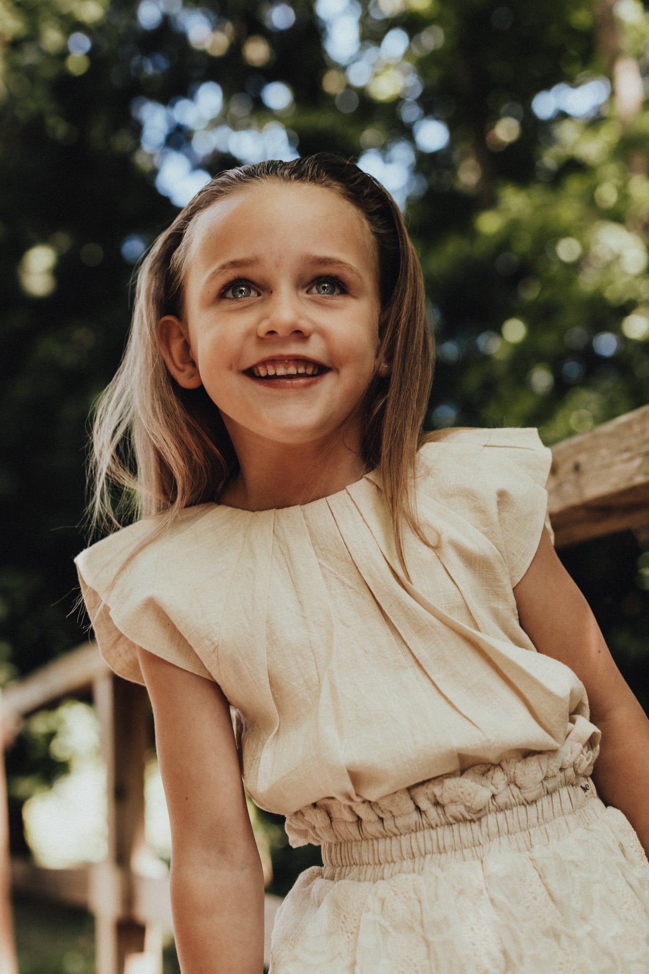 Prachtige afgewerkte top van Baje Studio. De kleur van blouse Moire is offwhite/beige.