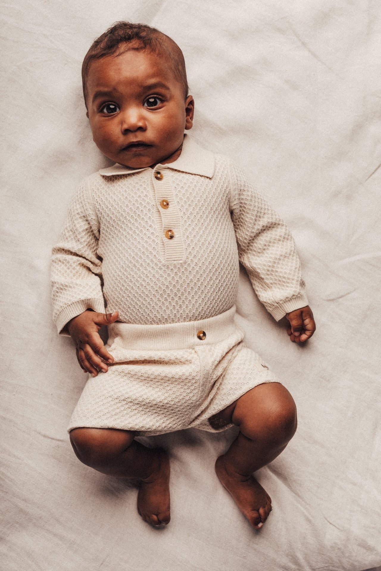 Prachtige gebreide polo romper met lange mouwen. Bodysuit Zalain van Baje Studio heeft een neutrale offwhite kleur. De must have voor elke baby jongen!