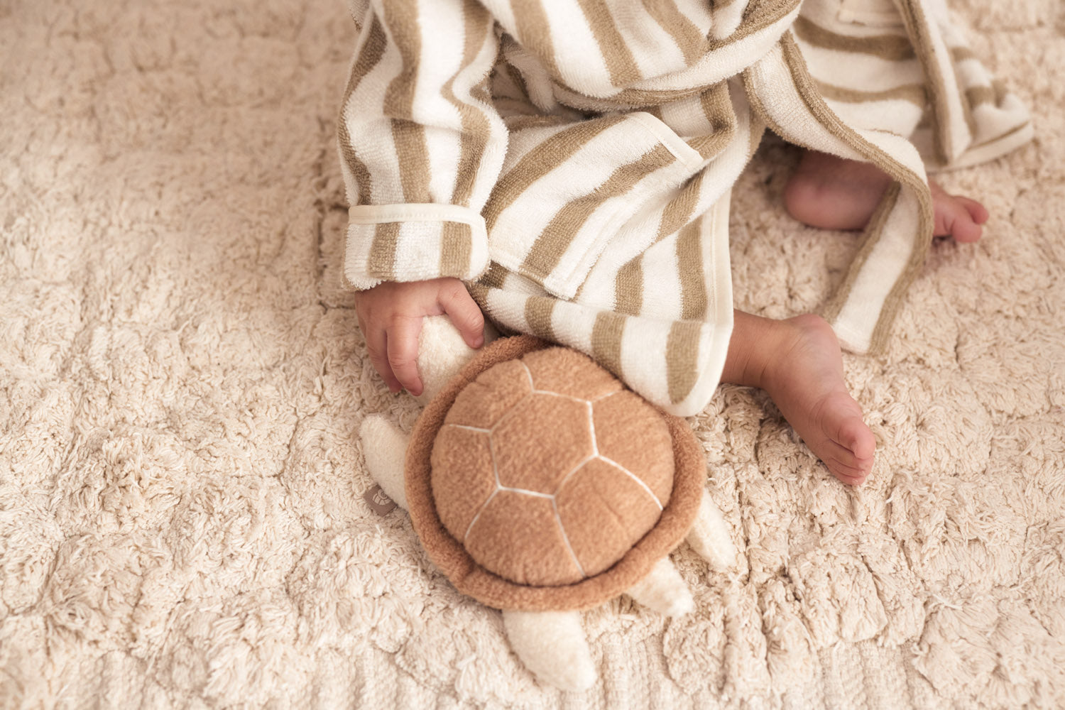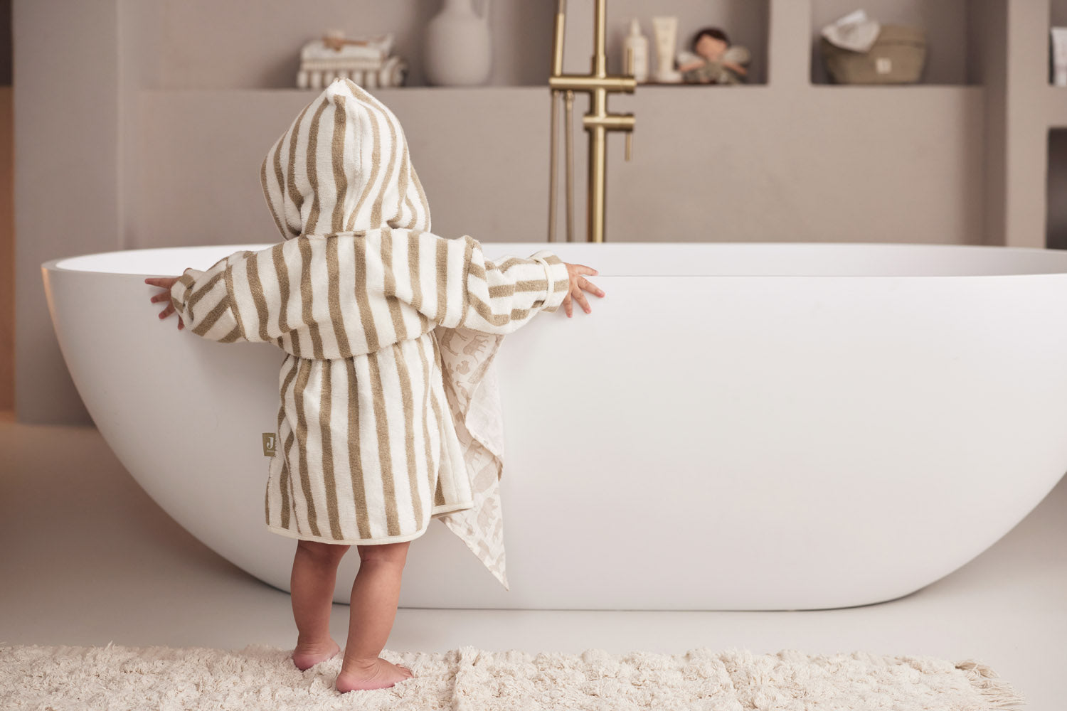 Geef je kindje het plezier van een warme én stijlvolle badjas na het badderen of zwemmen. Dit gestreepte kinderbadjasje is niet alleen heerlijk zacht, maar ook milieuvriendelijk met GOTS-certificering. Gemaakt van hoogwaardige badstof, biedt de badjas met strepen het ultieme comfort na het badderen. Deze badjasjes zijn voorzien van een handige capuchon, een drukknoopje voor de perfecte pasvorm en een praktische band om ze stevig vast te strikken. Beschikbaar in de maten 1-2 jaar en 3-4 jaar. Deze olive green gestreepte badjas is ook verkrijgbaar in de kleur wild rose gestreept.