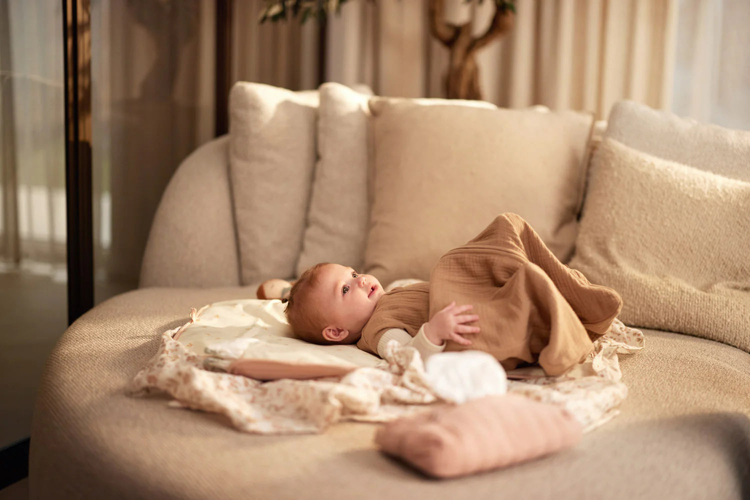 Zomer slaapzak voor baby's, dreumesen en peuters van luchtige hydrofiel stof. De TOG-waarde van deze slaapzak is 0,5. De slaapzak zorgt ervoor dat je kleintje toch een dun laagje over zich heen heeft tijdens de warme zomernachten. Is het wat kouder kun je er een pyjamaatje onder dragen. De kleur biscuit is een lichtbruine tint.