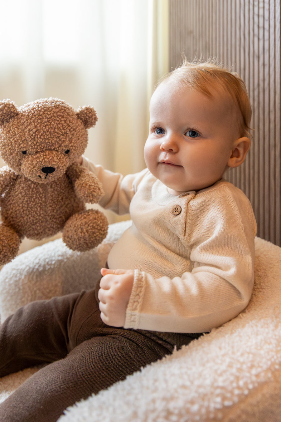 Maatadvies: deze gebreide romper van Lil Atelier valt groot/lang. Je kunt zeker een maat kleiner nemen dan de maat die je kindje nu draagt.