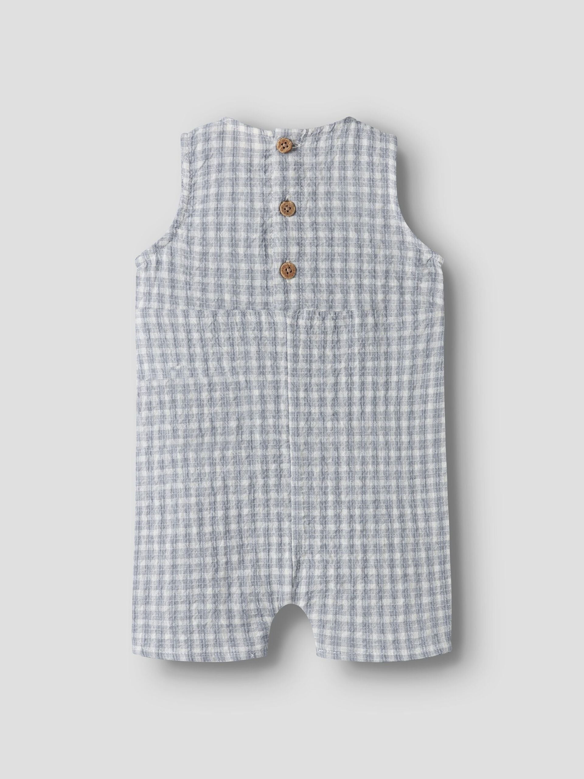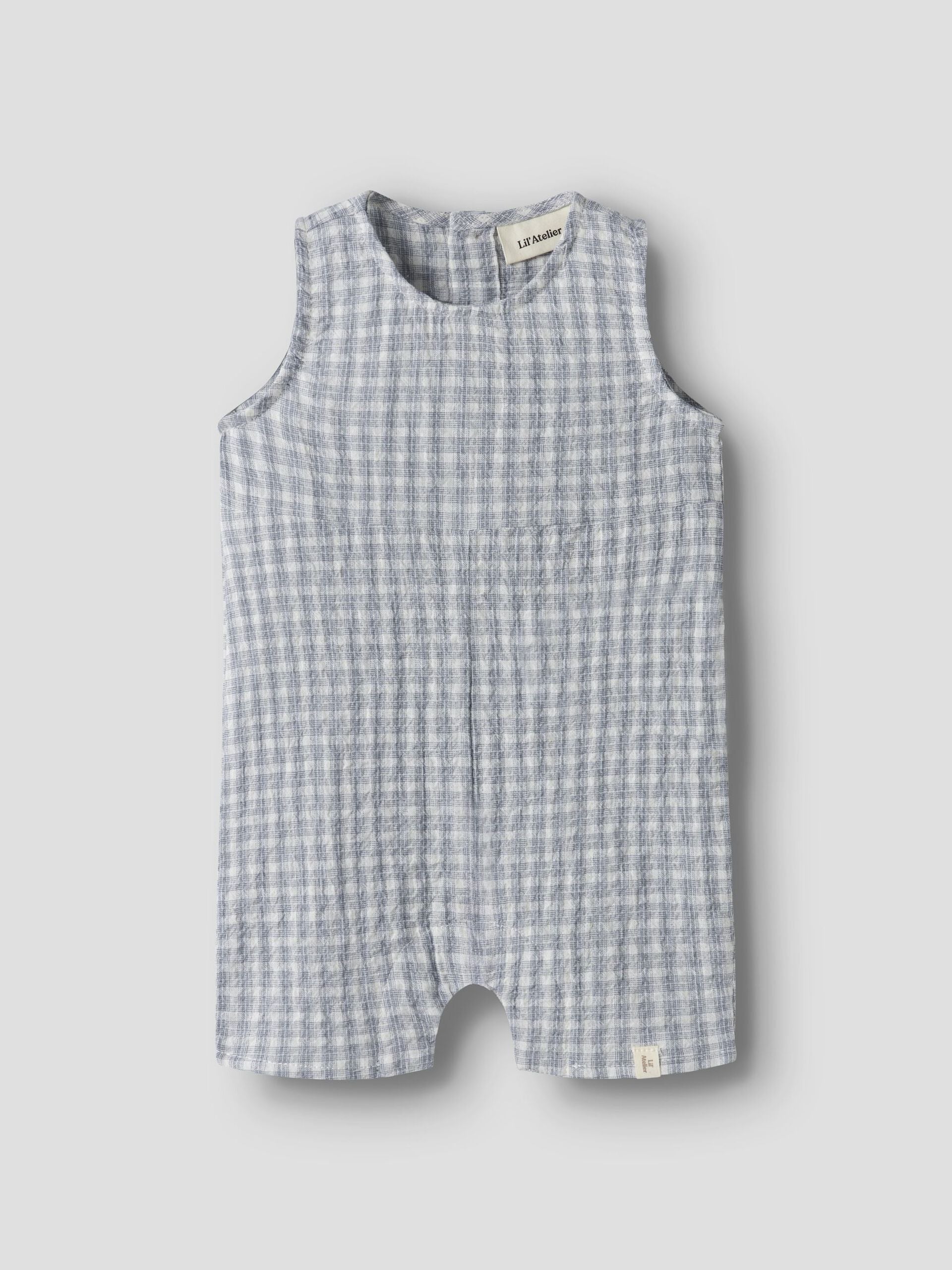 Heerlijk zomers jumpsuit van Lil Atelier. Dit jumpsuit voor jongens heeft een blauw geruit patroon. Is mouwloos en heeft korte broekspijpen.