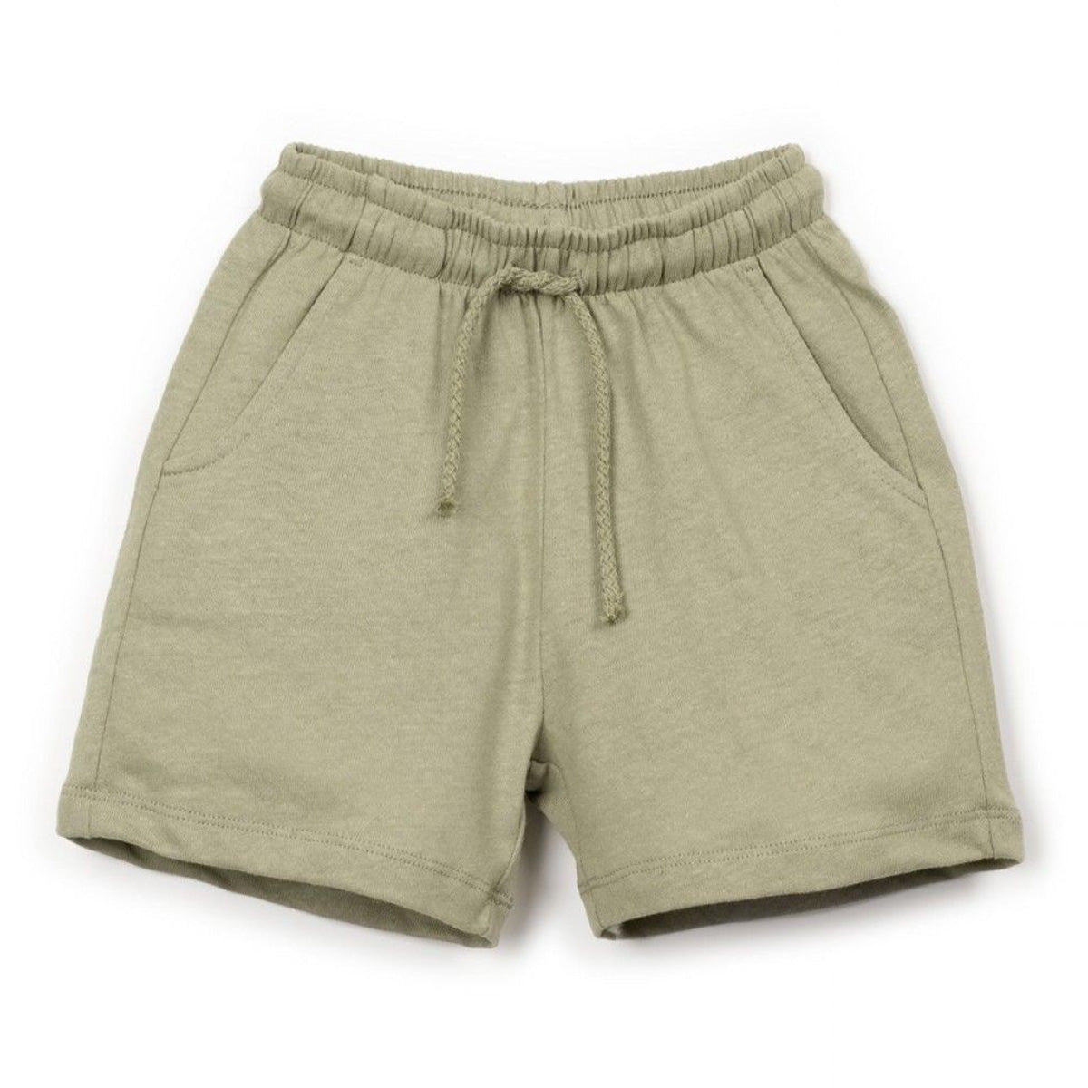 Deze shorts van Play Up zijn gemaakt van een zachte jersey, een mix van biologisch katoen en linnen. De shorts hebben de kleur kaki groen. Ze hebben een verstelbare trekkoord en zakken.