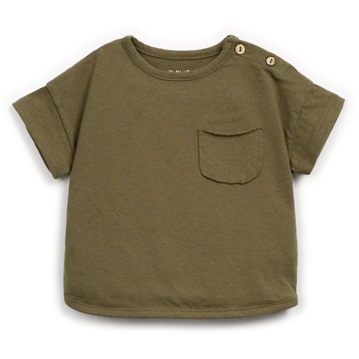 Basic T-shirt van Play Up in donkergroene kleur. Het shirt is gemaakt van een zachte jersey katoen. Het jongenshirt van Play Up heeft korte mouwen, een ronde hals en een borstzakje.. De groene kleur is ook wel te beschrijven als donkere olijfgroen of legergroen.