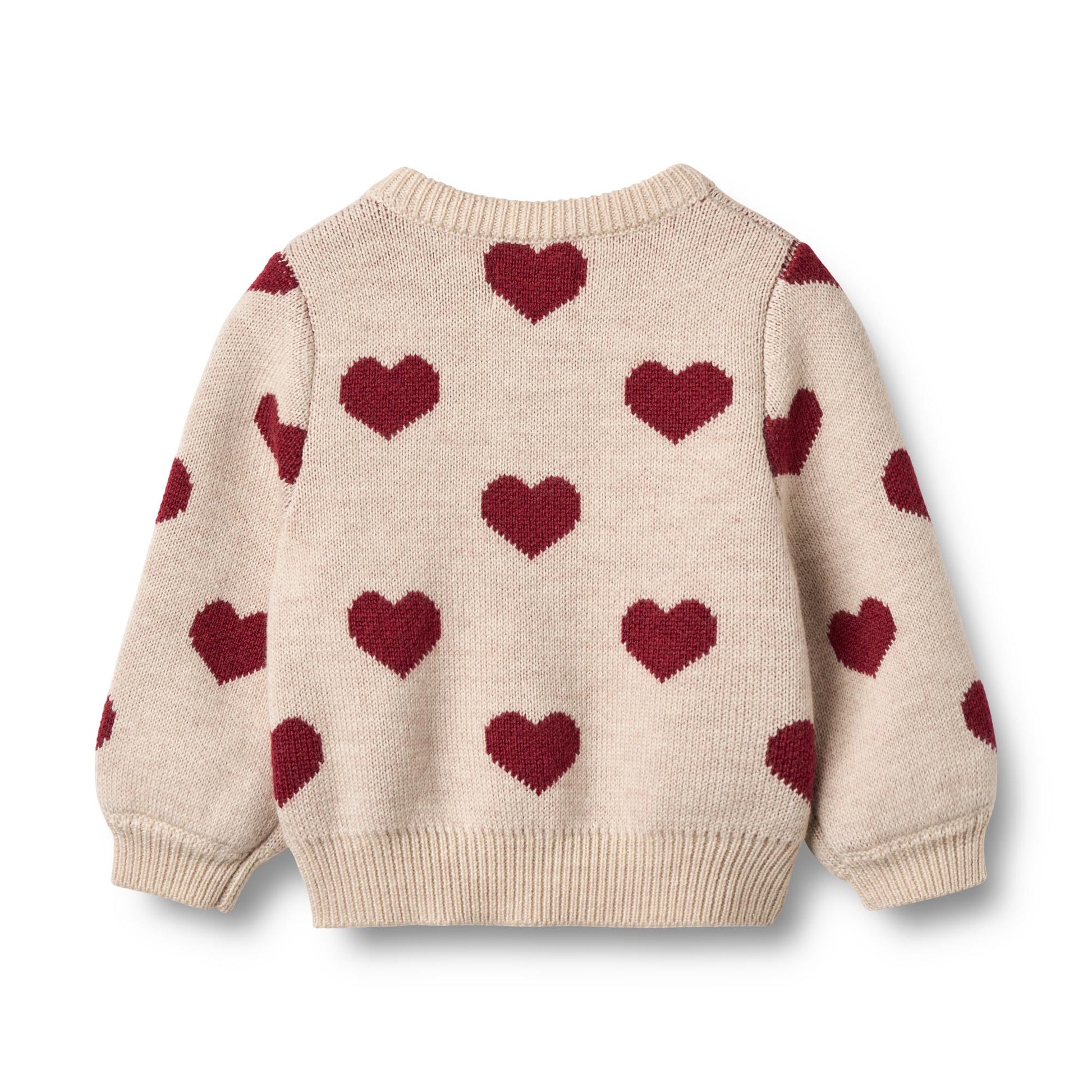 Wheat - jacquard knit heart cardigan baby - offwhite melange