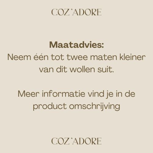 Was instructies: het wollen jumpsuit mag in de wasmachine, op max 30 graden. Het liefst een wolwas programma (met lagere touren) gebruiken en speciale wol wasmiddel. Niet in de droogmachine en ook niet strijken.